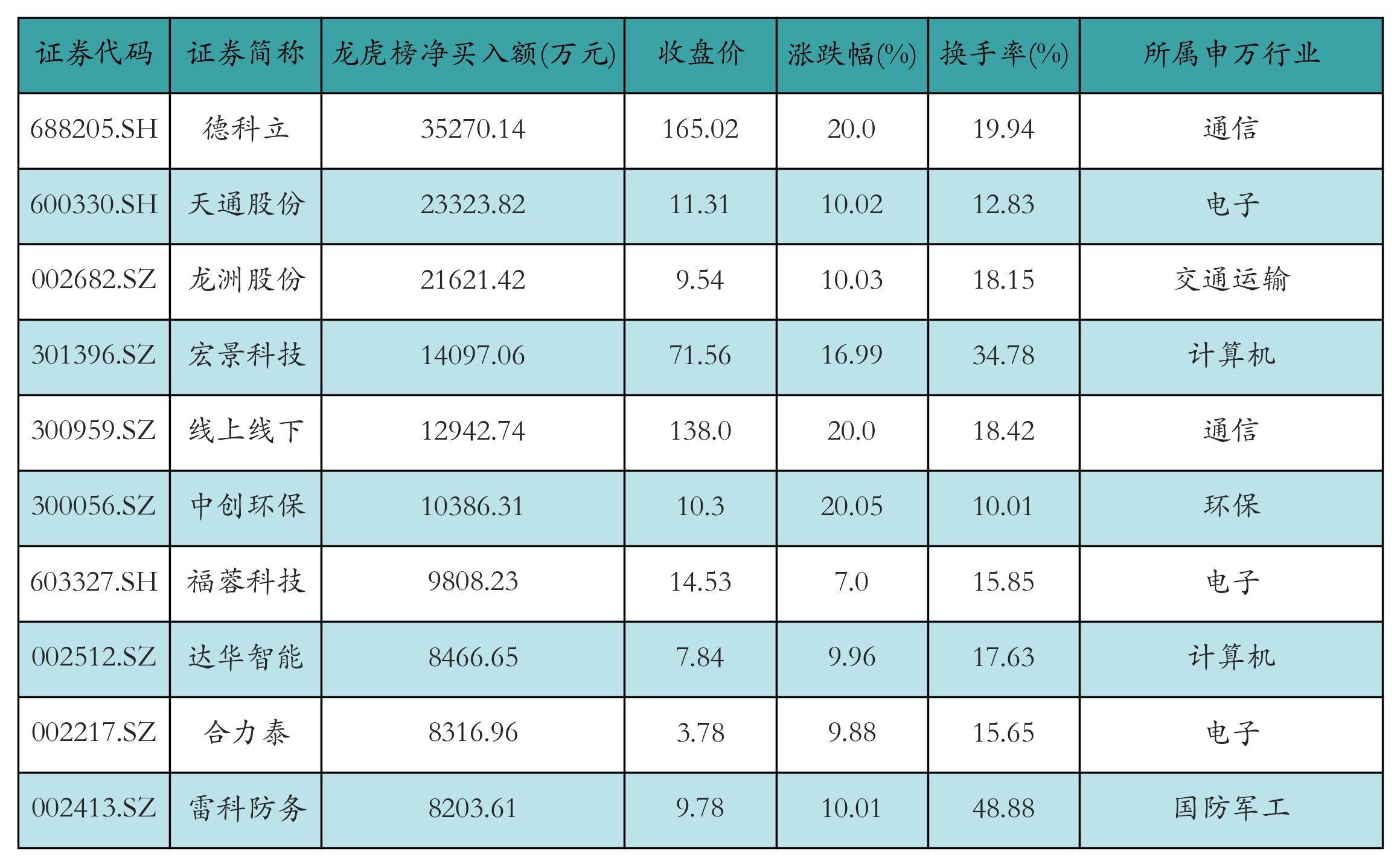 昨日龙虎榜商业部净买入额前10确定见下表:
